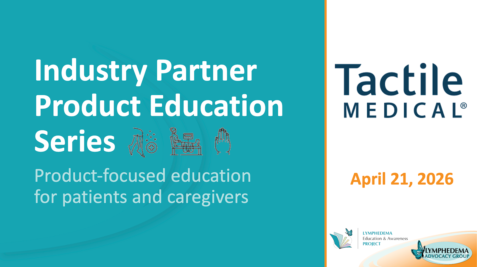 We are pleased to welcome Tactile Medical as the featured guest for our next Industry Partner Product Education Series Webinar, taking place on Tuesday, April 21st at 12:00 p.m. Eastern.